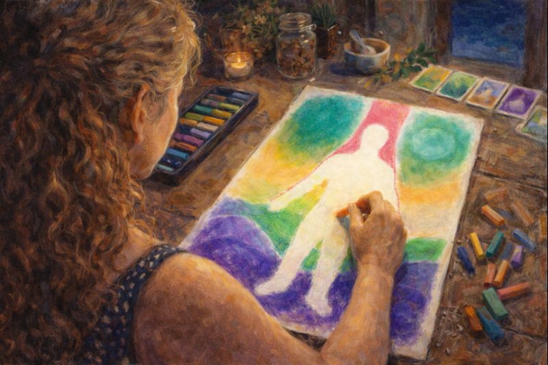 I began as a healer and psychic artist, and over the years have developed and published my own Aura Cards and books about the colours. In 2003 I graduated as a naturopath and began integrating the two approaches, culminating in my Somatic Aura Therapy modality, which includes aura reading.